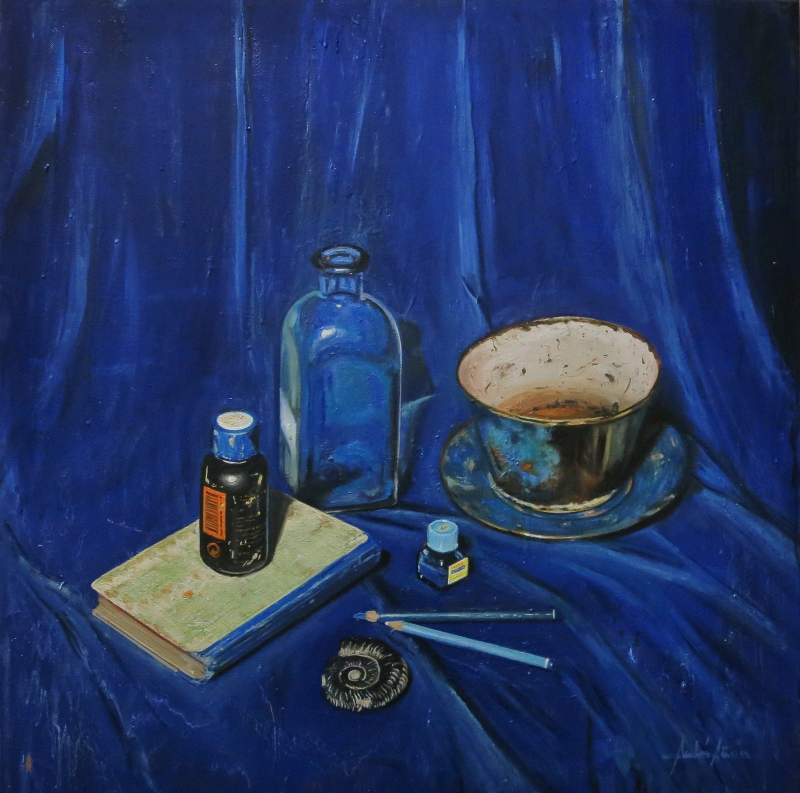 LA BOTELLA AZUL. Óleo sobre tela. 80x80